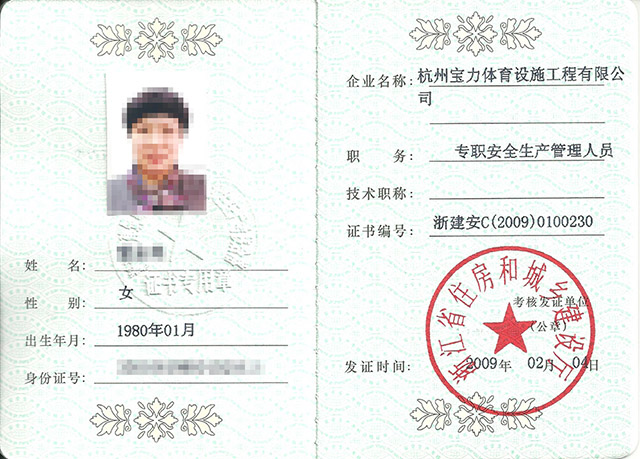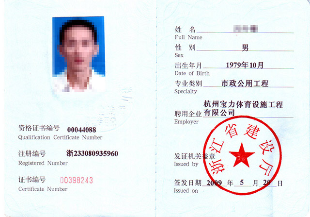 市政三級、房建三級、體育設施二級、體育設施行業協會能力認證一級,人員配備---建造師15個,具備施工員、安全員、質量員、材料員、資料員、勞務員、標準員、機械員,中國田徑協會劃線師、體育場地設計員、塑膠機操員。