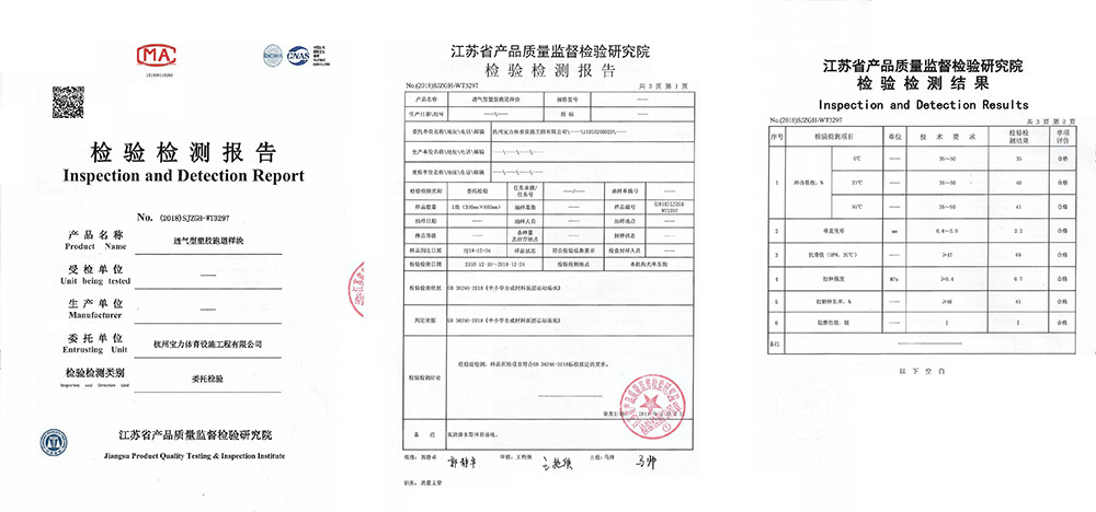 三大體系認證(iso9001質量管理體系、ISO14001環境管理體系、ohsas18001職業健康安全管理體系)通過中國田徑協會指定檢測機構化學性能物理性能檢測